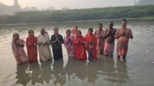 নিজস্ব সংবাদদাতা, মালদা—- মালদার গাজোলের আহোড়া এলাকার পাঁচ কালি মন্দির রয়েছে সেই এলাকার বাসিন্দা সহ বিভিন্ন এলাকার বাসিন্দা গঙ্গা স্নান উপচে পরল ভিড়৷ পাঁচ কালি গঙ্গা পূজা গঙ্গা স্নান মেলা কমিটির উদ্যোগে ও এলাকাবাসীদের সহযোগিতায় পাঁচ কালি মন্দির প্রাঙ্গণে এবং শ্রীমতি নদীর ধারে গঙ্গাস্নান ও মেলা চলছে প্রবল উৎসাহ উদ্দীপনের মধ্য দিয়ে। মকর সংক্রান্তি উপলক্ষে এখানে গঙ্গা পূজা গঙ্গা স্নান ও মেলা অনুষ্ঠিত হয়। এই অনুষ্ঠান ২০ তম পদার্পণ করল ।এই গঙ্গাস্নান ও মেলাতে উত্তরবঙ্গ, দক্ষিণবঙ্গ সহ রাজ্যের বিভিন্ন জায়গার ভক্তরা আসে এই গঙ্গা স্নান করার জন্য। গঙ্গা স্নান উপলক্ষে এলাকা জুরে জমজমাট মেলা । গঙ্গা স্নান মেলা উপলক্ষে পাঁচ দিনব্যাপী বাউল গান অনুষ্ঠিত হবে। এই মেলা কমিটির সভাপতি রমণী রায় ও কোষাধ্যক্ষ পরী রায় এবং নিত্য গোপাল রায় তারা বলেন পাঁচ কালি ও গঙ্গা পূজা গঙ্গাস্নান ও মেলা কমিটির উদ্যোগে গাজোলে আহোড়া পাঁচ কালি মন্দির প্রাঙ্গণে এবং শ্রীমতি নদীর ধারে গঙ্গা পূজা গঙ্গা স্নান এবং পাঁচ কালি মায়ের পূজা অনুষ্ঠিত হয়। এছাড়াও বিভিন্ন দেবদেবীর পূজা অনুষ্ঠিত হয রাত বারোটার পর পূজা অনুষ্ঠিত হয়। মঙ্গলবার ভোর থেকে গঙ্গাস্নান শুরু হয় এবং ভক্তদের মধ্যে প্রসাদ বিতরণ অনুষ্ঠিত হয়। এখানে গঙ্গাস্নান করার জন্য দক্ষিণবঙ্গ ও উত্তরবঙ্গ এমনকি ভারতবর্ষের বিভিন্ন রাজ্য থেকে ভক্তরা আসেন এখানে গঙ্গা স্নান করার জন্য। এই গঙ্গা পূজা গঙ্গাস্নান মেলা ও পাঁচ কালি মায়ের পূজা অত্র এলাকাবাসীদের খুব পরিচিত তাই প্রতিবছর প্রচুর ভক্তদের সমাগম হয়। মায়ের কাছে যে যা মানত করেন মা তাদের মনের বাসনা পূরণ করেন। এ পাঁচ কালী পূজা প্রায় ৫০০ বছরের পুরনো পুজো।এ পূজা কবে থেকে শুরু হয়েছিল কেউ সঠিকভাবে বলতে পারছেন না পূর্বে ডাকাত দলেরা পাঁচ কালি মায়ের পূজা করতেন। তারপর শ্রীমতি নদীতে মাছ ধরতে আসা জেলেরা এই পূজা করতেন আমরা মা-বাবা ঠাকুরদার কাছ থেকে শুনে আসছি। তারপর এলাকাবাসীদের উদ্যোগে সার্বজনীনভাবে এই গঙ্গা পূজা, গঙ্গাস্নান মেলা ও পাঁচ কালি মায়ের পূজা অনুষ্ঠিত হয়। এখানে পাঁচটি পাথর রয়েছে যা মাটি ভেদ করে উঠেছে এ পাঁচটি পাথরকে পাঁচ কালি হিসাবে পূজা করা হয়। এছাড়াও এখানে ৯-১০ খানা মূর্তি রয়েছে যেমন পূর্ণব্রহ্ম সনাতন সখা সখি নিয়ে পূর্ণ গঙ্গায় স্নান সমর্পণ, বাসুদেব কংশালয় থেকে পুত্রকে নিয়ে নন্দালয়ে গমন। বইকন্ঠে লক্ষ্মীর গৃহে শিবের আগমন। রাম লক্ষণ মাধব পার্টনি র নৌকায় আগমন ও বিশ্বামিত্রর মিথিলার ঘাটে গমন এছাড়াও রয়েছে আহরা পাঁচ কালীর প্রকৃত রূপ ধরে ছয়খানা যোগ সিদ্ধ পাথর যা যোগ দৃষ্টিতে বুঝা যায় প্রকৃত তথ্য বিশেষ।