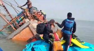 পূর্ব মেদিনীপুর, নিজস্ব সংবাদদাতাঃ- পূর্ব মেদিনীপুর জেলার দিঘার সমুদ্রগর্ভে ট্রলার ডুবির ঘটনায় অল্পের জন্য রক্ষা পেল ট্রলারে থাকা ৯ জন মৎস্যজীবী,সূত্রে জানা গিয়েছে ৯ জন মৎস্যজীবী নিয়ে সমুদ্র গর্ভে মাছ ধরতে রওনা দিয়েছিল একটি ট্রলার, ফেরার পথে মোহনার অদূরে হঠাৎই যান্ত্রিক ত্রুটির কারণে তলিয়ে যেতে থাকে ওই ট্রলারটি, খবর পেয়ে ঘটনাস্থলে উদ্ধারকারীরা গিয়ে ওই ৯ জন মৎস্যজীবীকে উদ্ধার করে, জানা গিয়েছে ওই নয় জন মৎস্যজীবীকে প্রাথমিক ভাবে শারীরিক পরীক্ষা-নিরীক্ষা করে ছেড়ে দেওয়া হয়েছে। অন্যদিকে এই ঘটনার খবর ছড়িয়ে পড়তে দীঘা মোহনা জুড়ে পড়ে গিয়েছে শোরগোল।
