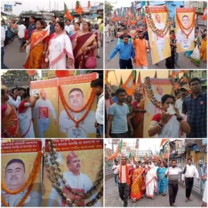 মেচেদাতে শুভেন্দুর ছবিতে জুতোর মালা পরিয়ে বিক্ষোভ করেছিল তৃণমূল,মেচেদাতেই পাল্টা প্রতিবাদ বিজেপির।