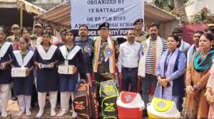নিজস্ব সংবাদদাতা, মালদাঃ- :—-বিএসএফ ১২ ব্যাটালিয়ানের মনসা মাতা ক্যাম্পের পক্ষ থেকে সিভিক অ্যাকশন প্রোগ্রাম অনুষ্ঠিত হয় শুক্রবার দুপুরে । শুক্রবার মালদা জেলার হবিবপুর থানার অন্তর্গত ভারত বাংলাদেশ সীমান্তে ঋষিপুর উচ্চ বিদ্যালয় ময়দানে বিভিন্ন অনুষ্ঠানের মধ্য দিয়ে সিভিক একশন প্রোগ্রাম করা হয়। ১২ ব্যাটালিয়ান বিএসএফের পক্ষ থেকে এদিন সীমান্তবর্তী বিদ্যালয়ের সিভিক অ্যাকশন প্রোগ্রামিং মধ্যে বিনামূল্যে ঋষিপুর উচ্চ বিদ্যালয়ের ছাত্র ছাত্রী মধ্যে খেলার সামগ্রী তুলে দেওয়া হয়। উপস্থিত অতিথিবর্গদের বরণ ও সংস্কৃতিক অনুষ্ঠানের মধ্য দিয়ে খেলার সামগ্রিক তুলে দেওয়া হয়। যেমন ভলিবল,ভলিবল নেট, স্পিকিং রূপে,ডাস্টবিন, ব্যাডমিন্টন র্যাকেট,জাবেলিং, সটপুট, ফুটবল, ক্রিকেট খেলার সামগ্রিক সহ খেলার বিভিন্ন জিনিস তুলে দিলেন কারণ আমার ব্যাটেলিয়ান কমান্ডার সহ বিশিষ্ট উপস্থিত ব্যক্তিবর্গরা ।ছাত্র-ছাত্রীরা জানান যেভাবে সীমান্তবর্তী এলাকায় জীবনের ঝুঁকে নিয়ে দিনরাত এক করে ঘরের পাহারা দিচ্ছেন তার পাশাপাশি সাধারণ মানুষকে সহযোগিতা করছেন বিএসএফ তারই অঙ্গ হিসেবে দেখা গেল সিভিক অ্যাকশন প্রোগ্রামের অনুষ্ঠানের মধ্য দিয়ে খেলার সামগ্রিক দিয়ে সহযোগিতা করতে। এদিন উপস্থিত ছিলেন বিএসএফ ১২ নম্বর ব্যাটেলিয়ান কমান্ডান্ডেট প্রেম কুমার,বিএসএফের ডেপুটি কমান্ডেন্ট পি আর সৃজিতিৎ,কোম্পানি কমান্ডার ইন্সপেক্টর সুধীর, সহ বিএসএফের১২ নাম্বার ব্যাটেলিয়ানের বি এস এফরা এছাড়াও উপস্থিত ছিলেন ঋষিপুর গ্রাম পঞ্চায়েতের প্রধান শান্তি শিকদার,এলাকার গ্রামপঞ্চায়েতের সদস্য সহ স্কুলের সকল শিক্ষক শিক্ষিকা,ছাত্রছাত্রীরা।