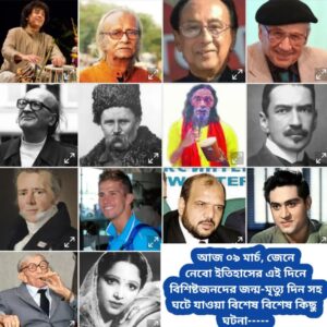 আজ ০৯ মার্চ, ইতিহাসের দিকে চোখ বুলিয়ে দেখে নেব ইতিহাসের এই দিনে বিশিষ্টজনদের জন্ম-মৃত্যু, দিনসহ ঘটে যাওয়া ঘটনা।।।
