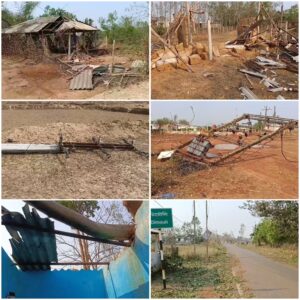 সোমবার রাতে কয়েক মিনিটের ঝড়ে লন্ডভন্ড হয়ে গেল পশ্চিম মেদিনীপুর জেলার খড়গপুর ১ নং ব্লকের ভেটিয়া গ্রাম পঞ্চায়েতের ডিমৌলি, বাধগোড়া সহ একাধিক এলাকা। ঝড়ের কারণে গ্রামের মধ্যে থাকা প্রচুর বিদ্যুতের খুঁটি উপড়ে যায়। ট্রান্সফরমার ভেঙ্গে মাটিতে পড়ে যায়। বহু গাছ ভেঙে পড়ে রাস্তার। শিলাবৃষ্টি এবং ঝড়ে বহু বাড়ির অ্যসবেসটসের ছাদ ভেঙে যায়, টিনের চাল উড়ে যায়। গাছ পড়ে বহু বাড়ি ভেঙে যায়। গ্রামবাসীরা জানান, ঝড় এবং শিলাবৃষ্টিতে মাঠের ধান নষ্ট হয়ে গিয়েছে। ফলে চাষিরা ব্যাপক আর্থিক ক্ষতির সম্মুখীন হবে। গতকাল রাতে ঝড়ের পর থেকেই এলাকায় বিদ্যুৎ বন্ধ হয়ে গেছে। পুরো রাত বিদ্যুৎ হীন অবস্থায় রয়েছে এলাকা। এলাকায় বিদ্যুৎ না থাকায় পানীয় জলের সমস্যা হচ্ছে।