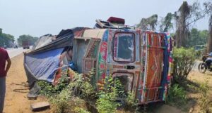 পশ্চিম মেদিনীপুর, নিজস্ব সংবাদদাতাঃ- জাতীয় সড়কে নিয়ন্ত্রণ হারিয়ে উল্টে গেল সিমেন্ট বোঝাই লরি। ঘটনাটি ঘটেছে পশ্চিম মেদিনীপুরের বেলদা তে। জানা যায়, বুধবার একটি লরি সিমেন্ট বোঝাই করে বেলদার দিক থেকে নারায়ণগড় দিকে যাওয়ার সময় বেলদার কাঁথি বাইপাসের কাছে লরির স্টিয়ারিং জাম হয়ে যাওয়ায় নিয়ন্ত্রণ হারিয়ে জাতীয় সড়কের উপর উল্টে যায় সেই মেন বোঝাই লরিটি। ঘটনাস্থলে পৌঁছায় বেলদা থানার পুলিশ ও জাতীয় সড়ক কর্তৃপক্ষ। দুর্ঘটনা গ্রস্ত লরিটিকে উদ্ধার করা হয়। ঘটনায় কোন হতাহতের খবর পাওয়া যায়নি।