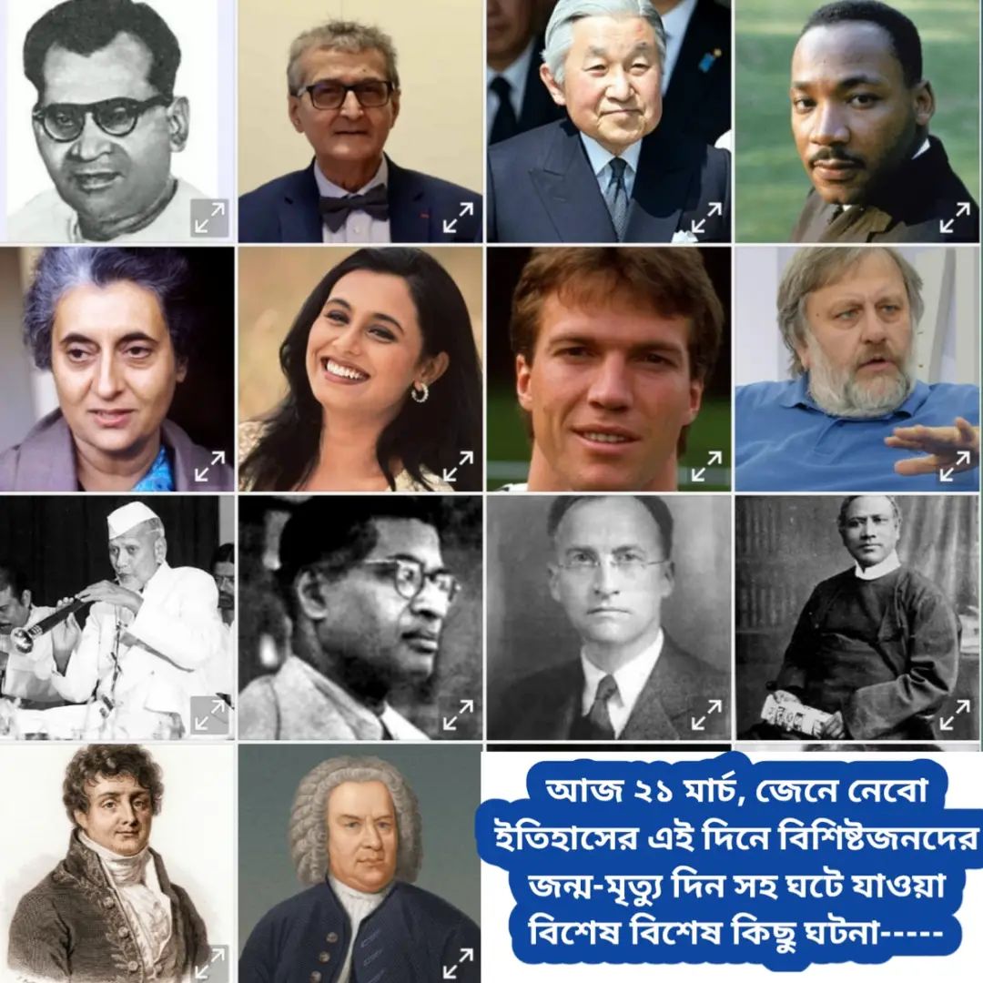 আজ ২১ মার্চ । এক নজরে দেখে নিই ইতিহাসের এই দিনে ঘটে যাওয়া উল্লেখযোগ্য ঘটনা, বিশিষ্টজনদের জন্ম-মৃত্যু দিনসহ গুরুত্বপূর্ণ আরও…