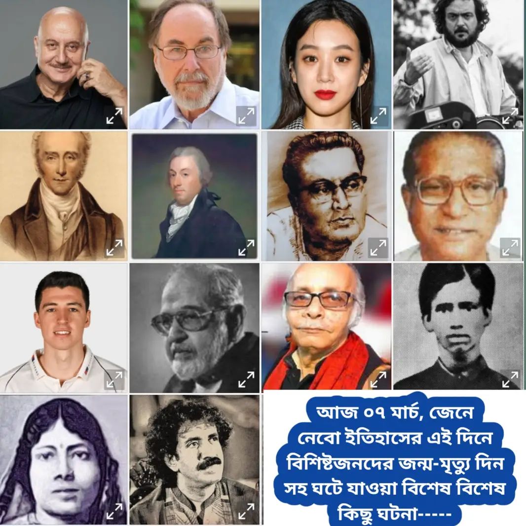 আজ ০৭ মার্চ । এক নজরে দেখে নিই ইতিহাসের এই দিনে ঘটে যাওয়া উল্লেখযোগ্য ঘটনা, বিশিষ্টজনদের জন্ম-মৃত্যু দিনসহ গুরুত্বপূর্ণ আরও…