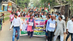 পশ্চিম মেদিনীপুর, নিজস্ব সংবাদদাতাঃ- ৭৪৮ টি জীবন দায়ী ঔষধের দাম মূল্যবৃদ্ধি হওয়ার কারণে রাজ্য তৃণমূলের পূর্ব ঘোষিত কর্মসূচি অনুযায়ী পশ্চিম মেদিনীপুর জেলা জুড়ে শুরু হয়েছে প্রতিবাদ কর্মসূচি, শনিবার পশ্চিম মেদিনীপুর জেলার কেশিয়াড়ি ব্লক তৃণমূল কংগ্রেসের ডাকে কেশিয়াড়ি বাজার এলাকায় প্রতিবাদ মিছিল করল তৃণমূল নেতাকর্মীরা, এই দিন এই প্রতিবাদ মিছিলে কয়েক হাজার তৃণমূল কর্মী সমর্থকরা মিলিয়েছেন, এই প্রতিবাদ কর্মসূচিতে উপস্থিত ছিলেন ব্লক তৃণমূল কংগ্রেসের সভাপতি অশোক রাউত, বিধায়ক পরেশ মুর্মু, পঞ্চায়েত সমিতির সভাপতি উত্তম সিট, সহ-সভাপতি দেবেন হাসদা, সাংগঠনিক জেলা তৃণমূল কংগ্রেসের সভা নেত্রী মামনি মান্ডি, হরেকৃষ্ণ সিং সহ অন্যান্য তৃণমূল নেতাকর্মীরা।