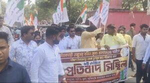 নিজস্ব সংবাদদাতা, গঙ্গারামপুর:- শনিবার দক্ষিণ দিনাজপুর জেলার গঙ্গারামপুর শহরে তৃণমূল ছাত্র পরিষদের উদ্যোগে আয়োজিত হলো এক বিশাল প্রতিবাদ মিছিল। গঙ্গারামপুর কলেজ প্রাঙ্গণ থেকে শুরু হয়ে এই মিছিলটি শহরের বিভিন্ন অংশ পরিক্রমা করে শেষ হয় তৃণমূল কংগ্রেসের জেলা পার্টি অফিসের সামনে।