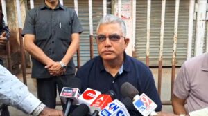 পশ্চিম মেদিনীপুর, নিজস্ব সংবাদদাতা :- ‘রামনবমীতে কেউ বাধা দেওয়ার চেষ্টা করলে মাড়িয়ে চলে যাবে’, ভেসে আসছিল এই সমস্ত হুঁশিয়ারি। রবিবার রামনবমীর দিনে দিলীপ ঘোষের ভূমিকা ঠিক কী হবে? সেই দিকে নজর ছিল রাজনৈতিক মহলের একাংশের। ২০২৩ সালে তিনি হাতে গদা নিয়ে মিছিল করেছিলেন খড়্গপুরে। ২০২৪-এর রামনবমী কেটেছিল লোকসভা ভোটের আবহে। বিধানসভা ভোটের এক বছর আগে ‘ঘরের মাঠ’ মেদিনীপুরে রামনবমীর দিন সকালে বাইক হাঁকিয়ে মিছিল করলেন দিলীপ ঘোষ। মাথায় গেরুয়া পাগড়ি, চোখে কালো সানগ্লাস, রাজ্য বিজেপির প্রাক্তন সভাপতির এই রূপ রাজনীতিতে তাঁর ঝাঁঝালো ‘কামব্যাক’-এর ইঙ্গিত? প্রশ্ন দলের ভিতরে-বাইরে। রবিবার সকালে গোপনন্দিনী মন্দিরে রামনবমীর পুজোতে যোগ দিয়ে বুলেট হাঁকিয়ে মেদিনীপুর সদর ব্লকের ধেড়ুয়া বাজারে পৌঁছে যান দিলীপ। তবে তার আগে মর্নিং ওয়াকের সময়েই তিনি হুঙ্কার দিয়েছিলেন, ‘জয় শ্রীরাম বললে যাঁদের বুক দুড়দুড় করে, তাঁরা আজ রাস্তায় বার হবেন না। হার্ট অ্যাটাক করতে পারে। কারণ সারা সমাজ আজ জয় শ্রীরাম বলছে। আর তা প্রতি বছর বাড়ছে। সবটাই রামের ইচ্ছেতেই হচ্ছে, হবেও।’