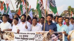 আলিপুরদুয়ার, নিজস্ব সংবাদদাতা :- প্রায় ২৬ হাজার শিক্ষক শিক্ষিকার চাকরি যাওয়ার প্রতিবাদে জটেশ্বরে ধিক্কার মিছিল। ফালাকাটা গ্রামীন ব্লক যুব কংগ্রেস ও ফালাকাটা গ্রামীন ব্লক তৃণমূল ছাত্র পরিষদের তরফে শুক্রবার বিকালে ফালাকাটা ব্লকের জটেশ্বর চৌপথি এলাকা থেকে এক ধিক্কার মিছিল বের করা হয়। ওই মিছিলটি জটেশ্বরের বিভিন্ন এলাকা পরিক্রমা করে।এদিন এই মিছিলে উপস্থিত ছিলেন ফালাকাটা গ্রামীণ ব্লক তৃণমূল কংগ্রেসের সভাপতি সঞ্জয় দাস ছিলেন আলিপুরদুয়ার জেলা ছাত্র সভাপতি সমীর ঘোষ, জেলা তৃণমূল কংগ্রেসের সহ সভাপতি সমরেশ পাল, ফালাকাটা গ্রামীণ ব্লক তৃণমূল যুব কংগ্রেসের সভাপতি তাপস বর্মন, ফালাকাটা গ্রামীন ব্লক তৃণমূল যুব কংগ্রেসের সহ-সভাপতি জবেদুল আলম প্রমুখ।