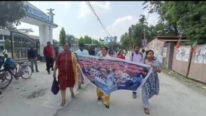 নিজস্ব সংবাদদাতা, আলিপুরদুয়ার:- যোগ্য চাকরিচ্যুত শিক্ষক ও শিক্ষাকর্মীদের পুনর্বহালের দাবিতে এবং পুলিশি বর্বরতার বিরুদ্ধে ধিক্কার মিছিল ও প্রতিবাদ সভা করলো ফালাকাটার পারঙ্গেরপার শিশু কল্যাণ উচ্চ বিদ্যালয়ের শিক্ষক শিক্ষিকা ও শিক্ষাকর্মীরা। শনিবার দুপুরে প্ল্যাকার্ড হাতে নিয়ে মিছিলে পা মেলান ওই বিদ্যালয়ের শিক্ষক শিক্ষিকারা। এদিন মিছিলটি ফালাকাটার পারঙ্গেরপার শিশু কল্যাণ উচ্চ বিদ্যালয়ের থেকে শুরু হয়ে ফালাকাটা শহরের বিভিন্ন এলাকা পরিক্রমা করে ফালাকাটার ধুপগুড়ি মোড় এলাকায় প্রতিবাদ