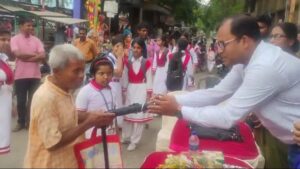 নিজস্ব সংবাদদাতা, বালুরঘাট, ১৬ এপ্রিল: গরমের মধ্যে প্রখর রোদ মাথায় নিয়ে স্কুলে যাওয়া আসা করছে একাধিক পড়ুয়া। এমনকি পথ চলতি প্রচুর মানুষ ছাতা ছাড়াই কাজ করছেন। বিষয়টি মাথা রেখে বুধবার স্কুল পড়ুয়া থেকে শুরু করে একাধিক দুস্থ পথচারীদের মধ্যে ছাতা বিলি করল বালুরঘাট লিলি ফাউন্ডেশন। এদিন থানা মোড় সংলগ্ন এলাকায় এই অনুষ্ঠানে উপস্থিত ছিলেন বালুরঘাট পুরসভার চেয়ারম্যান অশোক মিত্র। তিনি জানান, ‘এই সংস্থা মহিলাদের স্বনির্ভর করতে প্রশিক্ষণ, শীতে দুস্থদের বস্ত্র ও কম্বল বিলি সহ স্বাস্থ্য পরীক্ষা শিবির বছরজুড়ে আয়োজন করে। এদিন তারা রোদের হাত থেকে বাঁচাতে ছাতা বিলি করেছে। তাদের উদ্যোগকে সাধুবাদ জানাই।’