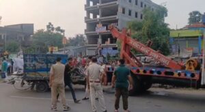 পূর্ব মেদিনীপুর, নিজস্ব সংবাদদাতাঃ- মর্মান্তিক পথ দুর্ঘটনায় মৃত্যু হল গাড়ি চালকের, ঘটনাকে ঘিরে তীব্র চাঞ্চল্য ছড়িয়েছে পূর্ব মেদিনীপুর জেলার কোলাঘাটের দেউলিয়া বাজার এলাকায়, স্থানীয় সূত্রে জানা গিয়েছে শনিবার বিকেলে দেউলিয়া বাজারে ১৬ নম্বর জাতীয় সড়কের উপর ট্রাফিক সিগন্যালে দাঁড়িয়ে থাকা লরির পিছনে দাঁড়িয়েছিল একটি ছোট্ট চারচাকা হাতি গাড়ি, সেই সময় আচমকাই পিছন থেকে একটি লরি সজরে ধাক্কা মারে ছোট গাড়ির পিছনে, ঘটনায় মর্মান্তিকভাবে মৃত্যু হয় ছোট্ট হাতি গাড়ির চালকের, ঘটনার খবর পেয়ে ঘটনাস্থলে ট্রাফিক পুলিশ ও কোলাঘাট থানার পুলিশ গিয়ে মৃতদেহ উদ্ধার করে, অন্যদিকে এই ঘটনার ফলে বেশ কিছুক্ষণ জাতীয় সড়ক অবরুদ্ধ হয়ে পড়ে, পরে পুলিশি হস্তক্ষেপে পরিস্থিতি স্বাভাবিক হয়, তবে মৃত চালকের নাম ও পরিচয় এখনো পর্যন্ত জানা যায়নি, গোটা ঘটনার তদন্ত প্রক্রিয়া শুরু করেছে পুলিশ।