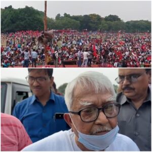 কলকাতা, নিজস্ব সংবাদদাতা:- মেহনতি মানুষের ব্রিগেড! বাম শ্রমিক কৃষক খেতমজুর ও বস্তি সংগঠনের ডাকে আজ ব্রিগেড সমাবেশ। বিভিন্ন জেলা থেকে বাম কর্মী সমর্থকরা পৌঁছেছে ব্রিগেড ময়দানে। উপস্থিত হলেন বামফ্রন্ট চেয়ারম্যান বিমান বসু।