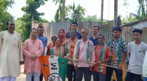 নিজস্ব সংবাদদাতা, আলিপুরদুয়ার:- জটেশ্বরে দল বদলের হিড়িক অব্যাহত, বিজেপি ছেড়ে তৃণমূলের হাত ধরল ৭টি পরিবার দাবি তৃণমূলের। ফালাকাটা ব্লকের জটেশ্বর ২ নম্বর গ্রাম পঞ্চায়েতের অন্তর্গত ১৩/১৪২ নম্বর বুথে শনিবার এই যোগদান সভা অনুষ্ঠিত হয়। সেখানেই বিজেপি ছেড়ে তৃণমূলে যোগদান করে ৭টি পরিবার বলে দাবি তৃণমূলের। বিজেপি ছেড়ে আসা সমর্থকদের হাতে তৃণমূলের দলীয় পতাকা তুলে দেন আলিপুরদুয়ার জেলা তৃণমূল কংগ্রেসের সহ-সভাপতি সমরেশ পাল। এছাড়াও ওই যোগদানের অনুষ্ঠানে উপস্থিত ছিলেন, ফালাকাটা গ্রামীন ব্লক তৃণমূলের সাধারণ সম্পাদক দেবজিৎ পাল, জটেশ্বর দুই নম্বর অঞ্চল তৃণমূল কংগ্রেসের চেয়ারম্যান মানিক সেন ছিলেন জটেশ্বর দুই নম্বর অঞ্চলের তৃণমূল কংগ্রেসের সংখ্যালঘু সেলের সভাপতি আমিনুল হক ছিলেন জটেশ্বর দুই নম্বর অঞ্চল তৃণমূল কংগ্রেসের সাধারণ সম্পাদক অনুপ দে সহ অন্যান্য নেতৃত্বরা।যদিও বিষয়টি নিয়ে বিজেপির ফালাকাটা ৪ নম্বর মন্ডল সম্পাদক অর্ণব ঘোষ বলেন, “গতকাল তৃণমূল ছেড়ে আটটি পরিবার বিজেপিতে যোগ দেন। তাঁদের মধ্যে ২টি পরিবারকে ভয় ভীতি দেখিতে ফের তৃণমূলে যোগদান করানোর চেষ্টা করছে তৃণমূল। ওদের পায়ের মাটি সরে গেছে।” যদিও গোটা ঘটনাকে ঘিরে শুরু হয়েছে রাজনৈতিক তর্জা।