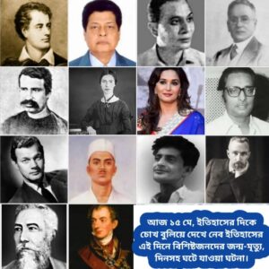 আজ ১৫ মে। এক নজরে দেখে নিই ইতিহাসের এই দিনে ঘটে যাওয়া উল্লেখযোগ্য ঘটনা, বিশিষ্টজনদের জন্ম-মৃত্যু দিনসহ গুরুত্বপূর্ণ আরও কিছু বিষয়।
