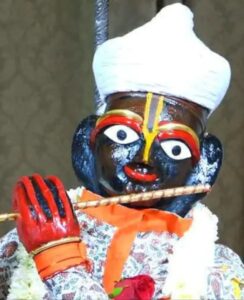 একদিনের ঘটনা । কৃষ্ণদাস ভাবে বিভোর হয়ে মুখে গীত গাইছেন আর নৃত্য করছেন তাঁর ইষ্ট কৃষ্ণবিগ্রহের সামনে। মনের ভাবখানা এমন যে– আমার নৃত্য দেখে, সংগীত শুনে আমার প্রাণনাথ, প্রাণারাম শ্রীশ্যামসুন্দর অত্যন্ত আনন্দ পাচ্ছেন তো ! আর তাই আরও দরদ ভরে গীত গাইছেন , আরও সুন্দর করে নৃত্যটি করার চেষ্টা করছেন তিনি । এমন সময় হলো কি চরণের নূপুরখানি খুলে পড়ে গেল তালঠোকার সময় ভুমিতে। কৃষ্ণদাস ভাবলেন , “ইস্ , নৃত্যরসের ব্যাঘাত ঘটলো !” অর্থাৎ, যেভাবে নৃত্যটি হচ্ছিল সেই পর্যায় থেকে চ্যূত হল নৃত্যটি। আর তাই তিনি নৃত্যের বিরাম দিয়ে তৎক্ষণাৎ দাঁড়িয়ে পড়লেন পুনরায় নূপুরটি চরণে পড়ে নেবেন বলে । হঠাৎ এক বালক বলে বসলো, “দাঁড়াও , দাঁড়াও। তোমায় কষ্ট করতে হবে না। আমি পড়িয়ে দিচ্ছি। তুমি যে ভঙ্গীমায় ছিলে সেই ভঙ্গীমাতেই স্থির হয়ে দাঁড়াও।” বলতে বলতেই অপূর্ব দর্শন বালকটি নূপুরটি চোখের নিমেষে কুড়িয়ে নিয়ে কৃষ্ণদাসের চরণে পড়িয়ে দিল। বালকের তৎপরতা দেখে কৃষ্ণদাসের ভারী ভালো লাগলো ; বলে বসলেন, “কে গো বাছা ? কে তুমি? নাম কি তোমার ? দেখিনি তো আগে । এখানে কোথায় থাকো?” কিন্তু জিজ্ঞাসাই সার হলো। প্রশ্ন শেষ হতে না হতেই বালকটি চোখের নিমেষে উধাও হয়ে গেল। মিলিয়ে গেল জলছবির বা মরীচিকার মতন বাতাসে। বালক নেই , অথচ চরণে নূপুর তো রয়ে গেছে। অর্থাৎ এ তো চোখের বা মনের ভ্রম নয় । বালকটি যে সত্যই এসেছিল তার প্রমাণ খুলে যাওয়া , ছিটকে পড়া নূপুরের পুনরায় চরণে উঠে আসা। তবে কে সে বালক ? কে প্রভু ? এ প্রশ্নের উত্তর পেতে শ্রীকৃষ্ণ বিগ্রহের দিকে তাকাতেই যেন সব উত্তর ঠোঁটে নিয়ে হাসির মধ্য দিয়ে জানিয়ে দিলেন শ্রীকৃষ্ণ- তিনিই তো সে-ই । কৃষ্ণদাস যখন বুঝলেন বালকবেশে এসে আসলে শ্রীকৃষ্ণই তাঁকে চরণের নূপুরটি পরিয়ে দিয়ে গেছেন, তখন চোখের জল যেন আর তাঁর বাঁধ মানে না । বক্ষ ভেসে গেল আনন্দে আবেগে। “আমার জীবন ধন্য আজ তোমার দর্শন পেয়ে প্রভু । আমি ধন্য সত্যই। আমি এ আনন্দ কাকে বোঝাবো !”- এসব বলে কৃষ্ণদাস আবেগে আপ্লুত হচ্ছেন।