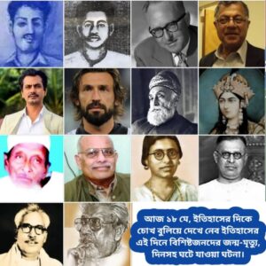 আজ ১৯ মে। এক নজরে দেখে নিই ইতিহাসের এই দিনে ঘটে যাওয়া উল্লেখযোগ্য ঘটনা, বিশিষ্টজনদের জন্ম-মৃত্যু দিনসহ গুরুত্বপূর্ণ আরও কিছু বিষয়।