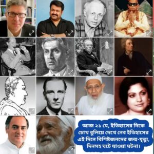 আজ ২১ মে, ইতিহাসের দিকে চোখ বুলিয়ে দেখে নেব ইতিহাসের এই দিনে বিশিষ্টজনদের জন্ম-মৃত্যু, দিনসহ ঘটে যাওয়া ঘটনা।।।।