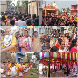 বীরভূম, নিজস্ব সংবাদদাতা:- আজ থেকে বীরভূমের রাজনগর ব্লকের অর্ন্তগত তাঁতীপাড়া বড় কালিতলা পাড়ার বাসিন্দাদের উদ্যোগে শুরু হলো চারদিন ব্যাপী হরিনাম সংকীর্তন এর। এই উপলক্ষে আজ সকালে গোপাল মন্দির থেকে এবং মহাপভু মন্দির থেকে গোপাল ও মহাপ্রভুর বিগ্রহ নিয়ে বর্ণাঢ্য শোভাযাত্রা সহকারে গ্রাম পরিকমা করা হয়। তাই আজ থেকেই বড় কালিতলা পাড়ায় চার দিন ধরে বিভিন্ন ধর্মীয় অনুষ্ঠান কীর্তন মুখরিত হয়ে থাকবে বড় কালিতলা পাড়া এবং শেষের দিনে কুঞ্জ ভঙ্গের পর প্রায় পাঁচ হাজার মানুষের নরনারায়ণ সেবার ব্যবস্থাও রাখা হয়েছে।