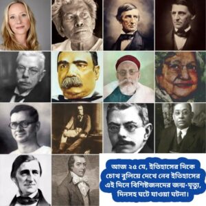 আজ ২৫ মে। এক নজরে দেখে নিই ইতিহাসের এই দিনে ঘটে যাওয়া উল্লেখযোগ্য ঘটনা, বিশিষ্টজনদের জন্ম-মৃত্যু দিনসহ গুরুত্বপূর্ণ আরও কিছু বিষয়।