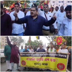 পূর্ব মেদিনীপুর, নিজস্ব সংবাদদাতাঃ- উড়িষ্যা বর্ডারের ঢিল ছোঁড়া দূরত্বে দাঁড়িয়ে তীব্র আক্রমণ ওড়িশা সরকারকে। প্রতিবেশী রাজ্য উড়িষ্যায় কর্মরত বাঙালীর উপর অত্যচারের প্রতিবাদে ধিক্কায় মিছিল করলো “বাংলা পক্ষ।” ডাক দিল বাঙালি জাতিকে এক হওয়ার ও উড়িষ্যায় পর্যটন বন্ধ করার। এই দিন উড়িষ্যা – বাংলা বর্ডারে অর্থাৎ মেদিনীপুর জেলার সৈকত নগরী দিঘায় পদযাএা করলো “বাংলা পক্ষ” সংগঠনের সদস্যরা। এই দিন মিছিলে শতাধিকের বেশি বাঙালি পা মেলান। দীঘার জগন্নাথ মন্দির থেকে শুরু হয় এই মিছিল, আর শেষ হয় উড়িষ্যা বড়া সংলগ্ন এলাকা ঘুরে দীঘা’র জাহাজবাড়ি সামনে। মিছিলে উড়িষ্যার এই রাজ্যের বাঙলী উপর অত্যচারে কথা স্লোগান তোলেন তাঁরা। এরপর অনুষ্ঠিত হয় “বাংলা পক্ষের” পথসভা।