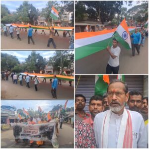 সকাল থেকেই উত্তেজনা, আবেগ আর দেশপ্রেমে মোড়া ছিল কোটাসুর এলাকা। ৭৫ ফুট লম্বা বিশাল জাতীয় পতাকার সঙ্গে ২০০টি ছোট পতাকা হাতে নিয়ে সাধারণ মানুষ অংশ নেন এই যাত্রায়। ব্র্যান্ড বাজনার তালে তালে তরুণ, প্রবীণ, মহিলা, শিশু—সকলেই এই যাত্রাকে রূপ দেন এক জাতীয় ঐক্যের প্রতিচ্ছবিতে।