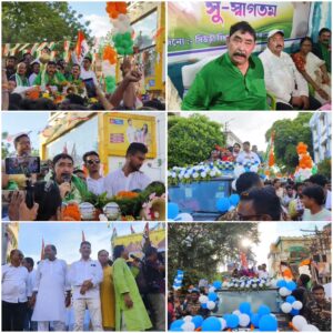 বীরভূম, নিজস্ব সংবাদদাতা:- বীরভূম জেলায় তিনটি সাব ডিভিশনে যে মহা মিছিলের ডাক দেওয়া হয়েছিল আজকে শেষ দিন শেষ দিনে মহা মিছিল অনুষ্ঠিত হয় সিউড়িতে। হাজার হাজার মানুষ একত্রিত হয়ে পা মেলালেন। এই মিছিলে। আজকের মিছিলেও কাজল ও কেষ্ট একত্রিত হতে দেখা গেল না। আজকের মঞ্চ তে অনুব্রত মণ্ডল কে দেখা গেল না। মঞ্চে ছিলেন বীরভূম জেলার সভাধিপতি কাজল শেখ, সিউড়ির বিধায়ক বিকাশ রায় চৌধুরী, মন্ত্রী চন্দনাথ সিনহা, লাভপুরের বিধায়ক অভিজিৎ সিংহ এছাড়া অন্যান্য তৃণমূলের নেতা-নেত্রী ও কর্মী বৃন্দ।