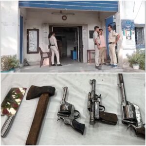 পানিহাটি পৌরসভার অন্তর্গত মৌলানা সেলিম রোডের বাসিন্দা নাইম আনসারীর বাড়িতে তল্লাশি ও অভিযান চালিয়ে বিপুল পরিমাণ আগ্নেয়াস্ত্র উদ্ধার।