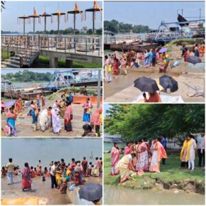 মুর্শিদাবাদ, নিজস্ব সংবাদদাতা:- কথিত আছে আজ এই দিনে মা গঙ্গা স্বর্গ থেকে মর্তে এসেছিলেন। তারপর থেকেই সলিলো ধারা হয়ে বয়ে চলেছে এই ধরাধামে। আর এই গঙ্গাবক্ষে যাদের কাজ, অর্থাৎ মৎস্যজীবী থেকে ফেরি ঘাটওয়ালা সকলেই গঙ্গাকে আঁকড়ে ধরেই তাদের জীবিকা নির্বাহ করে চলেছে, তাই মা গঙ্গার প্রতি সম্মান এবং শ্রদ্ধা জ্ঞাপন এর মধ্য দিয়েই ভক্তি ভরে প্রতি বছরের মত সুসজ্জিত মণ্ডপের দ্বারা মা গঙ্গার মূর্তি নির্মাণ করে সকাল থেকেই চলে পুজোপাঠ। বহু দূর দূরান্ত থেকে গ্রামাঞ্চলের বিভিন্ন এলাকার সকল স্তরের মানুষ আজ পূর্ণ লাভের উদ্দেশ্যে গঙ্গায় পুজো পাটের মধ্য দিয়ে গঙ্গাস্নান সারার পর করজোড়ে প্রণাম করেন মা গঙ্গার উদ্দেশ্যে। বহু দূর দুরান্ত থেকে পূর্ণ্যার্থীরা আসার কারণে জিয়াগঞ্জ আজিমগঞ্জ পৌরসভার পক্ষ থেকে নেওয়া হয় বেশ কিছু উদ্যোগ…. যেমন গঙ্গার পার গুলি পরিষ্কার-পরিচ্ছন্ন রাখা, গঙ্গার ঘাট গুলিকে সংস্কার করা, বিভিন্ন রকম সন্ধ্যাকালীন সাংস্কৃতিক অনুষ্ঠান নাটক, আজকের দিন কে বিশেষ মান্যতা দিয়ে আরতি মঞ্চের উপরে বিশেষভাবে গঙ্গা আরতি প্রদর্শন,থাকছে সকলের মধ্যে প্রসাদ বিতরণ। পৌরসভার সাথে যৌথভাবে প্রশাসনের তৎপরতাও থাকে চোখে পড়ার মতন। পুণ্য লাভের উদ্দেশ্যে গঙ্গা স্নানে এসে কোনরকম আপত্তিকর ঘটনা যেন না ঘটে সেদিকে ও কড়া নজর রেখেছেন জিয়াগঞ্জ পুলিশ প্রশাসন।
