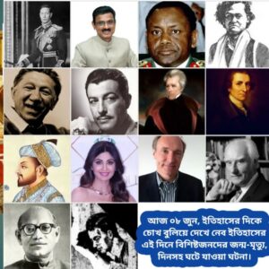 আজ ০৮ জুন, ইতিহাসের দিকে চোখ বুলিয়ে দেখে নেব ইতিহাসের এই দিনে বিশিষ্টজনদের জন্ম-মৃত্যু, দিনসহ ঘটে যাওয়া ঘটনা।।।।।