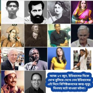 আজ ১৭ জুন। এক নজরে দেখে নিই ইতিহাসের এই দিনে ঘটে যাওয়া উল্লেখযোগ্য ঘটনা, বিশিষ্টজনদের জন্ম-মৃত্যু দিনসহ