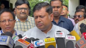 দক্ষিণ দিনাজপুর, নিজস্ব সংবাদদাতা:- বালুরঘাটের বিজেপি সাংসদ সুকান্ত মজুমদারেরবিরুদ্ধে সাইবার ক্রাইম থানায় অভিযোগ দায়ের তৃণমূলের নেতা মফিজ উদ্দিন মিয়ার।শনিবার দুপুরে বালুরঘাট শহরের 12 নম্বর ওয়ার্ডে তৃণমূল পার্টি অফিসে সাংবাদিক সম্মেলন করে তার দাবি সংখ্যালঘু সম্প্রদায়ের বিধায়ক এবং সংখ্যালঘু সম্প্রদায় ভুক্ত স্টেশন ম্যানেজার এবং তাকে সামাজিকভাবে অপদস্ত করার জন্য এই ধরনের চিরকুট ছড়িয়ে তাদের বদনামের চেষ্টা চলছে। আগামী দিনে তাদেরকে আরো অপদস্ত করা হতে পারে বলে আশংকা প্রকাশ করেছেন তিনি।