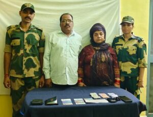 দক্ষিণ দিনাজপুর, নিজস্ব সংবাদদাতা:- ভারত-বাংলাদেশ আন্তর্জাতিক সীমান্তে বিএসএফ-এর তৎপরতায় ফের ভেস্তে গেল এক অবৈধ অনুপ্রবেশের চেষ্টা। মঙ্গলবার দুপুর ১টা ৪৫ মিনিট নাগাদ দক্ষিণ দিনাজপুর জেলার চক্রগোপাল সীমান্তবর্তী এলাকায় সীমান্তরক্ষী বাহিনীর জওয়ানরা এক বাংলাদেশি মহিলাকে আটক করেন। ধৃতের নাম জয়নব (৫০)।