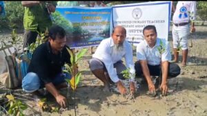 গোসাবায় উস্থি ইউনাটেড প্রাইমারি টিচার্সের ম্যানগ্রোভ রোপন কর্মসূচি।