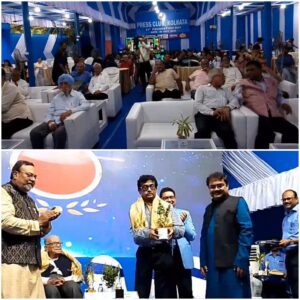 নিজস্ব সংবাদদাতা, কলকাতা:- ১৯৪৫ সালের ২২শে জুলাই ঐতিহাসিক কলকাতা প্রেস ক্লাবের প্রতিষ্ঠা হয়। ৮১তম প্রতিষ্ঠা দিবসে শনিবার ক্লাব প্রাঙ্গনে সাংবাদিকতা উৎকর্ষ সম্মাননা প্রদান করা হয়। এদিনের অনুষ্ঠানে উপস্থিত ছিলেন প্রেস ক্লাবের সভাপতি স্নেহাশিস সূর। ছিলেন কিংশুক প্রামাণিক, নিতাই মালাকার, প্রখ্যাত চিত্র পরিচালক গৌতম ঘোষ, সঞ্জয় বুঁধিয়া, বামফ্রন্টের চেয়ারম্যান বিমান বসু, মন্ত্রী শোভনদেব চট্টোপাধ্যায় সহ বহু বিশিষ্ট ব্যক্তিবর্গ। সমগ্র অনুষ্ঠানে মঞ্চে সঞ্চালনায় ছিলেন সাংবাদিক মৌপ্ৰিয়া নন্দী।