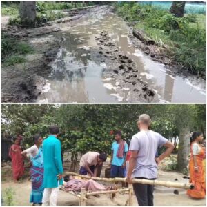 মালদা, নিজস্ব সংবাদদাতাঃ –হতশ্রী রাস্তার ভাইরাল ভিডিও-তে তুলে ধরা হয়েছিল বেহাল রাস্তার চরম দুর্ভোগের ছবি। বেহাল রাস্তার কারণে গ্রামে ঢোকার মতো কোন যানবাহন না অসুস্থ রোগীকে হাসপাতালে চিকিৎসা করিয়ে খাটিয়ায় চাপিয়ে বাড়িতে আনতে বাধ্য হয়েছিলেন পরিবারবর্গ। শনিবার সন্ধ্যায় মালদার হবিবপুর ব্লকের শ্রীরামপুর অঞ্চলের রঞ্জিতপুর গ্রামের সেই ভাইরাল ভিডিও প্রকাশ্যে আসতেই রীতিমতো সোরগোল পড়েছিল নেট দুনিয়ায়। তাই সেই গ্রামের রাস্তার বাস্তব চিত্র তুলে ধরতে রবিবার সাত সকালেই রঞ্জিতপুর গ্রামে। গ্রামে পৌঁছানো মাত্রই ভাইরাল ভিডিওর সত্যতা উঠে আসে। সত্যতার কথা জানান গ্রামবাসী সহ অসুস্থ রোগীর পরিবারবর্গ। এমনি চোখের সামনেও শনিবারের ভাইরাল ভিডিওর সত্যতার পুনরাবৃত্তির ঘটনা ঘটে। হাসপাতালে চিকিৎসা করিয়ে আনা সেই রোগী রবিবার সকালে আবারও গুরুতর অসুস্থ হয়ে পড়েন। তাই তাকে পরিবারবর্গ সহ গ্রামবাসীরা মিলে খাটিয়ায় চাপিয়ে বেহাল রাস্তা পার করে গাড়িতে করে হাসপাতালে নিয়ে যান।ঘটনায় গ্রামবাসীরা অভিযোগ করে বলেন, তাদের গ্রামের রাস্তা স্বাধীনতার এত বছর পরেও পাকা হয়নি। জলকাদাময় বেহাল রাস্তা দিয়ে তাদের যাতায়াত করতে হয়। বেহাল রাস্তার কারণে গ্রামের ছেলেমেয়েরা স্কুল-কলেজে যেতে পারেন। গ্রামে কেউ অসুস্থ হয়ে পড়লে অ্যাম্বুলেন্স কিংবা অন্যকোন, যানবাহন আসতে চায়না। গ্রামে কেউ অসুস্থ হয়ে পড়লে হাসপাতালে নিয়ে যাতে একমাত্র ভরসা হয়ে ওঠে খাটিয়া। খাটিয়ায় চাপিয়েই রোগীকে হাসপাতালে নিয়ে যেতে হয় কিংবা হাসপাতাল থেকে বাড়িতে আনতে হয়। শনিবার সন্ধ্যায় নেট দুর্নিয়ায় বেহাল রাস্তার যে চরম দুর্ভোগের ছবি নজরে আসে তা তৃণমূলের স্থানীয় গ্রাম পঞ্চায়েত সদস্যার স্বামী নিজে ভিডিও করে সেই ছবি ভাইরাল করেন। তার বক্তব্য, পীরতলা থেকে চাঁইপাড়া পর্যন্ত প্রায় তিন কিলোমিটার রাস্তা অত্যন্ত বেহাল অবস্থায় রয়েছে। যা পঞ্চায়েতের সীমিত আর্থিক ক্ষমতায় পাকা করা সম্ভবপর নয়। তাই তিনি এই বিষয়ে স্থানীয় জেলাপরিষদ সদস্য থেকে শুরু করে বিডিও সাহেব, এমনকি জেলাশাসকের দৃষ্টি আকর্ষণ করেছেন। কিন্তু এখনও কেউ কোন উদ্যোগ গ্রহণ করেনি। সকলেই দেখছি, দেখবো করছেন। তাই তিনি বাধ্য হয়ে বেহাল রাস্তার চরম দুর্ভোগের ছবি নেট দুনিয়ায় ভাইরাল করেছেন।