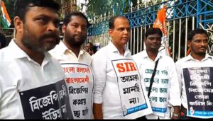 কলকাতা, নিজস্ব সংবাদদাতা:- যুব কংগ্রেসের রাজভবন অভিযান ঘিরে ধুন্ধুমার ধর্মতলা চত্বর। উত্তেজনা ছড়াল নিউমার্কেটের কলকাতা কর্পোরেশনের সামনে। বাংলা ভাষা ও বাঙালীদের ওপর আক্রমণের প্রতিবাদে রাজভবন অভিযানের ডাক দেয় যুব কংগ্রেস। এদিন ওয়েলিংটন থেকে এক সুবিশাল মিছিল রাজভবন উদ্দেশ্যে রওনা দেয়। এদিনের এই প্রতিবাদ মিছিলের নেতৃত্ব দেন যুব কংগ্রেসকর্মী আসিফ রেজা, অর্ঘ্য গণ, হাবিবুর রহমান। মিছিল নিউ মার্কেট চত্বরে সামনে আসতেই পুলিশ ব্যারিকেট করে আটকে দেয়। পুলিশের সাথে যুব কংগ্রেসের কর্মীদের ধস্তাধস্তি হয়। পুলিশ বলপূর্বক টেনে প্রিজম ভ্যানে তোলে।