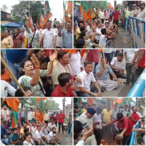 পূর্ব বর্ধমান, নিজস্ব সংবাদদাতা: – কোচবিহারে বিরোধী দলনেতা শুভেন্দু অধিকারীর কনভয়ে হামলার ঘটনার জেরে রাজ্যজুড়ে রাজনৈতিক উত্তেজনা। তারই প্রেক্ষিতে আজ হালিশহরের হাজিনগর পুলিশ ফাঁড়ির সামনে টায়ার জ্বালিয়ে বিক্ষোভ প্রদর্শন করল ব্যারাকপুর জেলা ভারতীয় জনতা যুব মোর্চা।