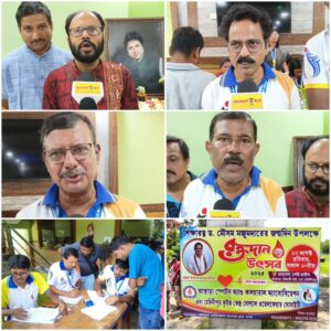 পূর্ব মেদিনীপু, নিজস্ব সংবাদদাতা:- শিক্ষারত্ন ডঃ মৌসুম মজুমদারের জন্ম মাস কে সামনে রেখে রবিবার পূর্ব মেদিনীপুর জেলার তমলুকের একটু বেসরকারি আবাসনে আস্তারা স্পোর্টস এন্ড কালচার অ্যাসোসিয়েশন ও মেদিনীপুর কুইজ কেন্দ্র সোশ্যাল ওয়েলফেয়ার সোসাইটি যৌথ উদ্যোগে রক্তদান শিবিরের আয়োজন করা হয়, পাশাপাশি ক্যান্সার রোগীদের স্বার্থে চুল দান ও পৃথিবীর ভারসাম্যতা রক্ষার্থে এবং সবুজায়েন কে ধরে রাখতে চারা গাছ বিলি করা হয় সংস্থার পক্ষ থেকে, জানা গিয়েছে এই দিন এই রক্তদান শিবিরে শতাধিক রক্ত দাতা রক্ত দান করেন,এই দিন উপস্থিত ছিলেন সংস্থার বিভিন্ন কর্মকর্তা সহ এলাকার বিভিন্ন সমাজ সেবীরা।