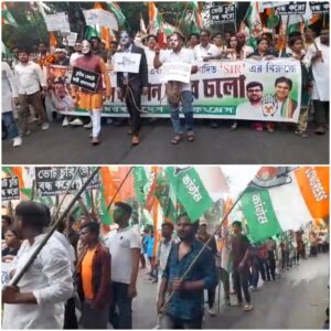কলকাতা, নিজস্ব সংবাদদাতা:- নির্বাচন কমিশনের বিরুদ্ধে যুব কংগ্রেসের প্রতিবাদ মিছিল। ভোট চুরির অভিযোগ ও উদ্দেশ্যপ্রণোদিত ‘SIR’-এর বিরুদ্ধে সরব হলো পশ্চিমবঙ্গ প্রদেশ যুব কংগ্রেস। জিপিও কলকাতা থেকে এক বিক্ষোভ মিছিল অনুষ্ঠিত হয় রাজ্যের মুখ্য নির্বাচনী আধিকারিকের দফতর পর্যন্ত ।
