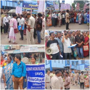 বালুরঘাট, দক্ষিণ দিনাজপুর, নিজস্ব সংবাদদাতা :- ভ্যাকসিন ক্যারিয়ার, প্রশিক্ষিত দাই, লিংক ম্যান, কমিউনিটি হেলথ গাইড দের ভাতা বৃদ্ধির দাবিতে বিক্ষোভ ডেপুটেশন বালুরঘাটে। সরকারি স্বাস্থ্য দপ্তরের অধীনে গ্রাম্য এলাকার এই সকল স্বাস্থ্যকর্মীরা এদিন সংগ্রামী যৌথ মঞ্চের ব্যানারে জেলাশাসকের দপ্তরের সামনে ভাতা বৃদ্ধির দাবিতে বিক্ষোভ প্রদর্শন করে। পরবর্তীতে জেলা শাসকের দপ্তরে এবং জেলা মুখ্য স্বাস্থ্য আধিকারিকের দপ্তরে স্মারকলিপি জমা দেয়।