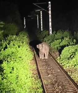 আলিপুরদুয়ার, নিজস্ব সংবাদদাতা:- রাত দুটো নাগাদ ছুটছিল ডাউন কবিগুরু এক্সপ্রেস। হঠাৎই ট্রেনের দুই চালক প্রকাশ কুমার ও কামরু মন্ডলের নজরে আসে রেল লাইনের ওপর ঘোরাফেরা করছে একটি হস্তী শাবক। সঙ্গে সঙ্গে সেখানে মা হাতিটিও চলে আসে। ঘটনাটি ঘটছে নাগরাকাটা ও চালসা স্টেশনের মাঝে ৬৯/০ নম্বর পিলারের কাছে। তড়িঘড়ি জরুরীকালীন ব্রেক কষে ট্রেন থামিয়ে দেন চালক। এই ঘটনায় ওই ট্রেনটি প্রায় ২৩ মিনিট দাঁড়িয়ে থাকে। এরপর মা এবং শাবক জঙ্গলে প্রবেশ করলে ওই ট্রেনটি ফের গন্তব্যের উদ্দেশ্যে রওনা দেয়।