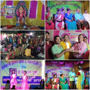 নিজস্ব সংবাদদাতা, মালদা, ২৯ আগস্ট——শ্রী শ্রী গনেশ পূজা উপলক্ষে রাজবংশী মিলন মেলা ও নাঙ্গলডিঘী উৎসব অনুষ্ঠিত হয় রাজবংশী সংঘের পরিচালনায়। বৃহস্পতিবার রাত্রে গাজোল ২ নং গ্রাম পঞ্চায়েতের ফতেপুর বারুইপাড়া হইচই মোড় এলাকায় গণেশ পূজা অনুষ্ঠিত হয় প্রবল উৎসাহ উদ্দীপনার মধ্য দিয়ে। নিয়ম নিষ্ঠা ভক্তি শ্রদ্ধা ভাবে শ্রী শ্রী গনেশ পূজা অনুষ্ঠিত হয় গত বুধবার। বৃহস্পতিবার রাত্রিতে দ্বিতীয় দিনের গনেশ পূজা উপলক্ষে রাজবংশী মিলন মেলা ও নাঙ্গলডিঘী উৎসব মেলা বিভিন্ন সাংস্কৃতিক অনুষ্ঠান ও বিভিন্ন ধরনের খেলাধুলা অনুষ্ঠিত হয়। অনুষ্ঠান দেখার জন্য প্রচুর দর্শকের সমাগম হয়। শ্রী শ্রী গণেশ পূজা উপলক্ষে ভাওয়াইয়া গান অনুষ্ঠিত হয়। রাজবংশী সংঘের সদস্য নীহাররঞ্জন মন্ডল জানিয়েছেন তাদের এই অনুষ্ঠান এবার পঞ্চম তম অনুষ্ঠান। আজ দ্বিতীয় দিনে একাধিক সাংস্কৃতিক অনুষ্ঠান অনুষ্ঠিত হয়। একাধিক অতিথি ব্যক্তিদের সংবর্ধনা প্রদান করা হয়। এছাড়াও ভাওয়াইয়া গান হয়।নানা ধরনের খেলা প্রতিযোগিতা অনুষ্ঠিত হয়। গণেশ পূজা উপলক্ষে মেলাও জমে উঠেছে। এই অনুষ্ঠানে উপস্থিত ছিলেন গাজোল ২ নং অঞ্চলের প্রধান অর্মিলা রাজবংশী গাজোল ২ নং অঞ্চলের সেক্রেটারি গোপাল বর্মন বিশিষ্ট সমাজসেবী সুভাষ বর্মন, রাজবংশী সংঘের সভাপতি সঞ্জয় সরকার, সদস্য নিহার রঞ্জন মন্ডল, জয়দেব সরকার,বিপ্লব মন্ডল, জুয়েল সরকার,দিব্যেন্দু সরকার সহ অন্যান্যরা।