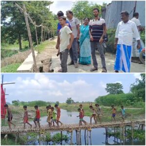 নিজস্ব সংবাদদাতা, মালদাঃ- – : ঝুঁকিপূর্ণ বাঁশের সাঁকো দিয়ে নদী পারাপার। ব্রিজের দাবিতে সরব স্থানীয়রা। বিধানসভা নির্বাচনের আগে কংক্রিটের ব্রিজ না হলে ভোট বয়কটের হুঁশিয়ারি। হরিশ্চন্দ্রপুর ১ ব্লকের কুশিদা গ্রাম পঞ্চায়েতের উত্তর মুকুন্দপুর ও উত্তর কাশিয়াপাড়ার মাঝে মরা মহানন্দা নদীর উপরে সাঁকো টি রয়েছে। স্থানীয় সূত্রে জানা গিয়েছে,বহু বছর ধরে প্রাণের ঝুঁকি নিয়ে বাঁশের সাঁকোর উপর দিয়ে নদী পারাপার করছে এলাকার মানুষ। এই সাঁকো পাকা হলে এলাকার হাজার হাজার মানুষ উপকৃত হবেন বলে মনে করছেন স্থানীয় বাসিন্দারা।