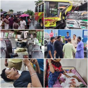 কালনায় বাস-ডাম্পারের মুখোমুখি সংঘর্ষে আহত ২০।