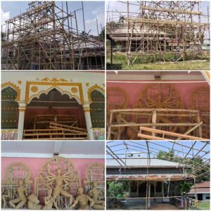 মালদা, নিজস্ব সংবাদদাতাঃ– প্রতীক্ষার আর কিছু দিন। বাঙালির ঘরে আসছে উমা। চারিদিকেই শুরু হয়ে গেছে প্রস্তুতি। তা কলকাতা শহরতলির বিগ বাজেটের পুজো হোক কিংবা প্রত্যন্ত গ্রাম বাংলার কোনো পুজো। মালদহের বামনগোলা ব্লকের বাংলাদেশ সীমান্তবর্তী গ্রাম খুটাদহ। স্বাধীনতার পর ১৯৬৪ সালে স্থানীয়রা সকলে মিলে শুরু করেছিল এলাকার প্রথম দুর্গাপুজো। তৈরি হয়েছিল মন্দির। পুজো হতো জাঁকজমক ভাবে। বসত মেলা। পার্শ্ববর্তী তৎকালীন পূর্ব পাকিস্তান এবং অধুনা বাংলাদেশের ওই এলাকার বাঙালিরাও এই পুজোতে অংশগ্রহণ করত। দেশ ভাগ হলেও এই এলাকায় ছিল না কাঁটাতারের বেড়া। ১৯৭১ সালে বাংলাদেশের জন্মের পর হিন্দু মুসলিম নির্বিশেষে দুই বাংলার বাঙালি মিলে এই পূজো হয়ে উঠতো সম্প্রীতির মহামিলন ক্ষেত্র। যদিও পরবর্তীতে কাঁটাতারের বেড়া হওয়ার পরে মন্দিরের অংশটুকু পড়ে যায় সীমান্তের ওই পাড়ে জিরো পয়েন্টে। ফলে ২০১১ সালে স্থানীয়রা সীমান্তের এই পাড়ে খুঁটাদহ এলাকায় একটি নাটমন্দির নির্মাণ করে। যেখানে এখন মূল পুজো হচ্ছে। তবে এখনো মহাষষ্ঠীর দিন আগে সীমান্তের ওই পাড়ে পুরনো মন্দিরে পুজো দিয়ে সেখান থেকে ঘট নিয়ে আসে। তারপর শুরু হয় এই মন্দিরে পুজো। সম্পূর্ণ রকমভাবে সীমান্ত রক্ষা বাহিনী সহায়তা করে পুজো কমিটিকে। পুজোর উদ্বোধনও করেন বিএসএফ আধিকারিকরা। এই পুজোর বেশ কিছু বৈশিষ্ট্য রয়েছে। যেমন অষ্টমীর দিন মহাভোগ। ঐদিন পার্শ্ববর্তী অন্যান্য পুজো কমিটি থেকে এখানে ভোগ পাঠানো হয়। এই ভোগ একত্রিত করে বিতরণ হয় নববীর দিন। সন্ধিপূজা শুরু হয় দুস্থ মেধাবী ছাত্রীদের বিভিন্নভাবে সহায়তা করে। এছাড়াও প্রত্যেক বছর দুইজন দুস্থ মেধাবী ছাত্র ছাত্রীর পড়াশোনার দায়িত্ব নেওয়া হয় পুজো কমিটির পক্ষ থেকে।
