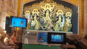 মন্ত্রী বিপ্লব মিত্র। প্রতিটি পুজো উদ্যোক্তারা ভার্চুয়াল উদ্বোধনের জন্য ক্লাবে স্ক্রিন লাগিয়েছেন।