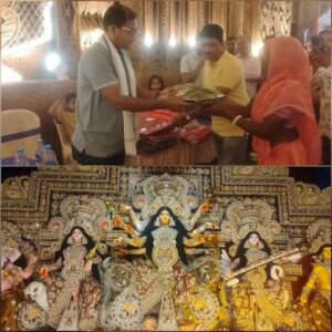 বালুরঘাট, নিজস্ব সংবাদদাতা:- দুর্গাপূজোর প্রাক্কালে সমাজের আর্থিকভাবে পিছিয়ে পড়া মানুষদের হাতে বস্ত্র তুলে দিল বালুরঘাটের ঐতিহ্যবাহী দুর্গাপূজা কমিটি ত্রিধারা ক্লাব। এদিনের এই সামাজিক কর্মসূচিতে উপস্থিত ছিলেন বালুরঘাট পৌরসভার চেয়ারম্যান অশোক কুমার মিত্র, স্থানীয় ওয়ার্ড কাউন্সিলর নিতা নন্দী, বিশিষ্ট সমাজসেবী সুভাষ চাকি সহ ক্লাবের সকল সদস্যরা। পুজোর লগ্নে এই উদ্যোগ শহর জুড়ে প্রশংসা কুড়িয়েছে।