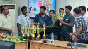 দক্ষিণ দিনাজপুর, নিজস্ব সংবাদদাতাঃ- একটি অনুষ্ঠানের মধ্য দিয়ে দক্ষিণ দিনাজপুর জেলার বালুরঘাট শহরে দক্ষিণ দিনাজপুর জেলা প্রশাসনের পক্ষ থেকে রাজ্য সরকার আয়োজিত বিশ্ববাংলা শারদ সম্মানের পুরস্কার বিতরণ করা হলো বিবেকানন্দ কনফারেন্স হলে শনিবার বিকেল চারটা নাগাদ সেরা পুজো সেরা মন্ডপ, সেরা প্রতিমা,সেরা সমাজ সচেতনতা এই চারটি বিভাগে মোট 12 টি ক্লাবকে পুরস্কৃত করা হয় জেলা প্রশাসনের পক্ষ থেকে। এই অনুষ্ঠানে উপস্থিত ছিলেন দক্ষিণ দিনাজপুর জেলার বালুরঘাট মহকুমার মহকুমা শাসক সুব্রত মন্ডল, দক্ষিণ দিনাজপুর জেলা তথ্যসংস্কৃতি আধিকারিক আজিজুর রহমান দক্ষিণ দিনাজপুর জেলার গঙ্গারামপুর মহকুমার তথ্য সংস্কৃতি আধিকারিক শুভায়ন হক সহ অন্যান্যরা।