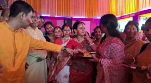 নিজস্ব সংবাদদাতা, মালদা—- বিজয়া দশমীতে সিঁদুর খেলায় মাতলেন বিজেপির বিধায়ক গোপালচন্দ্র সাহা ও পুরাতন মালদহ পঞ্চায়েত সমিতির সভাপতি রুম্পা রাজবংশী সরকার। পুরাতন মালদহের সমাজ কল্যাণ সমিতিতে এই মুহূর্তে চলছে সিঁদুর খেলা ও নাচ।